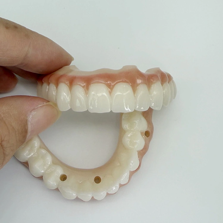 Prótesis de arco completo puente de implante híbrido todo en x puente híbrido de circonio completo con goma estética de porcelana rosa hecha a mano, laboratorio dental WM del laboratorio dental de China que proporciona la mejor solución para fresar el implante de arco completo puente de implante de circonio